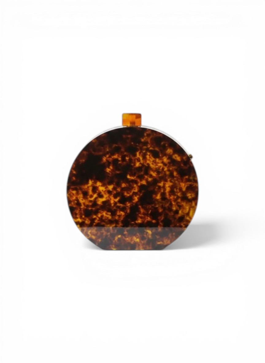 Confeccionada à mão em acrílico e madeira sustentável. Possui botões magnéticos para o seu fechamento e metais banhados a ouro. A bolsa acompanha alça corrente removível, assim, você pode usar como clutch ou como bolsa tiracolo.