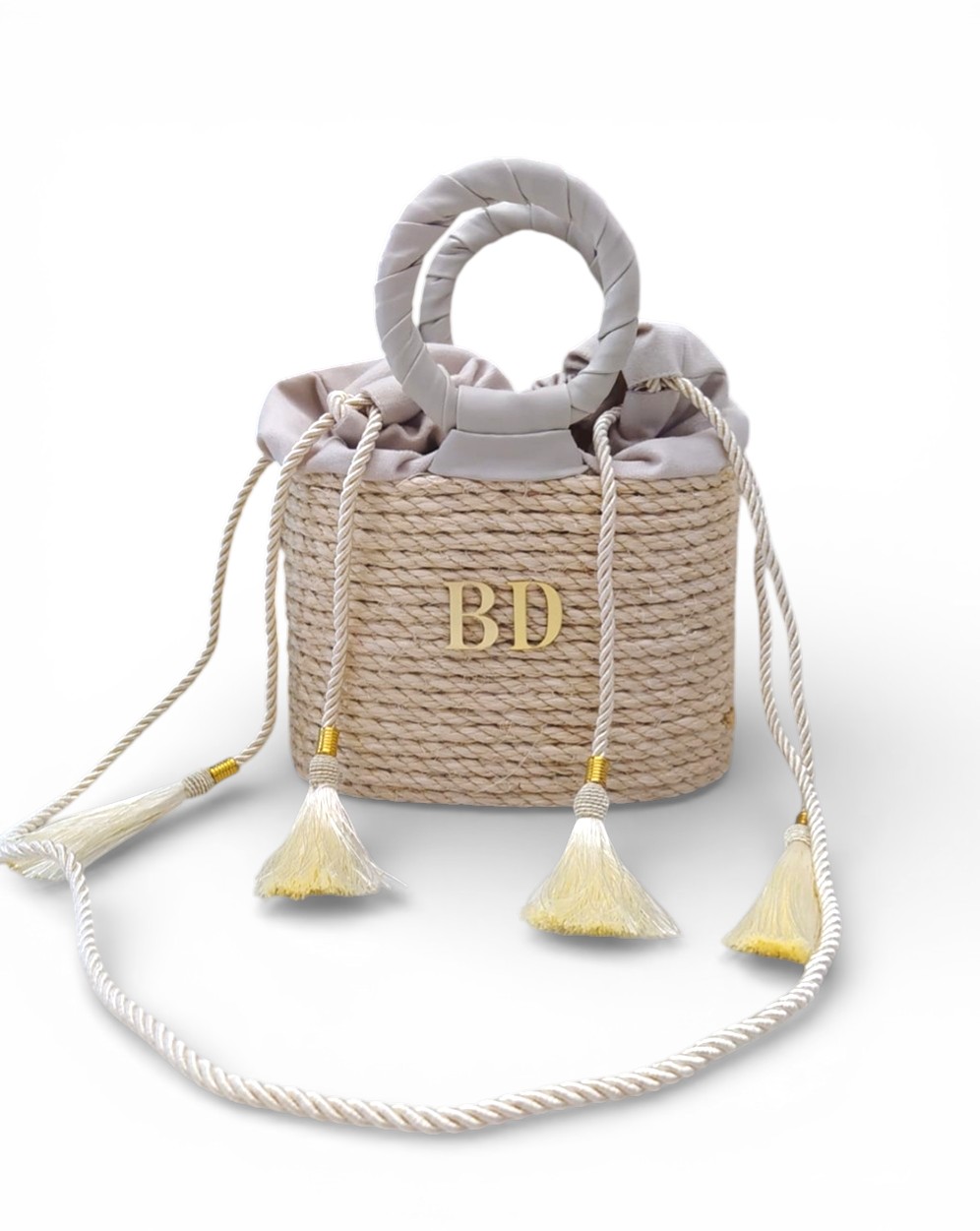 Confeccionada com a misturinha mágica que amamos de fibra natural e couro ecológico ela é garantia de sucesso por onde passar! Super versátil, pode ser usada de dia e de noite. E ainda pode ser personalizada com até duas iniciais!