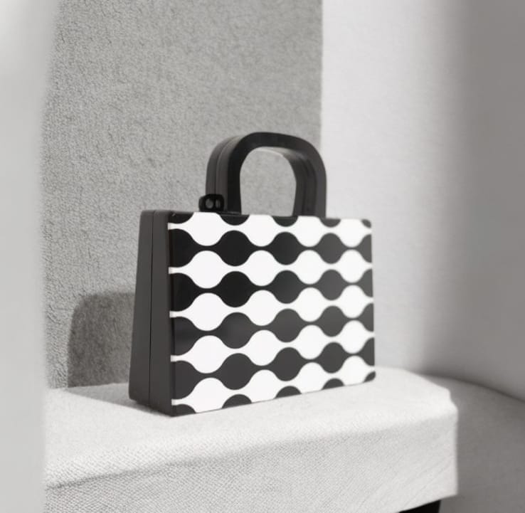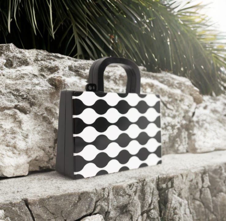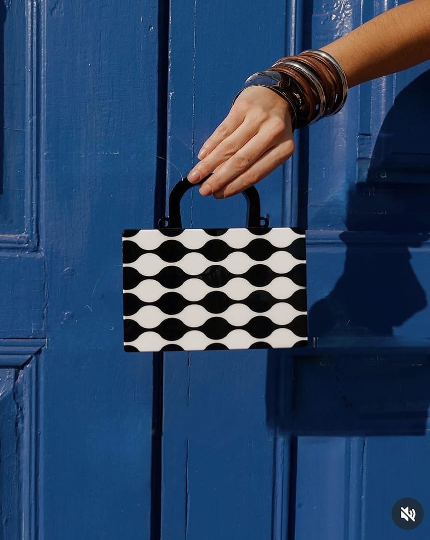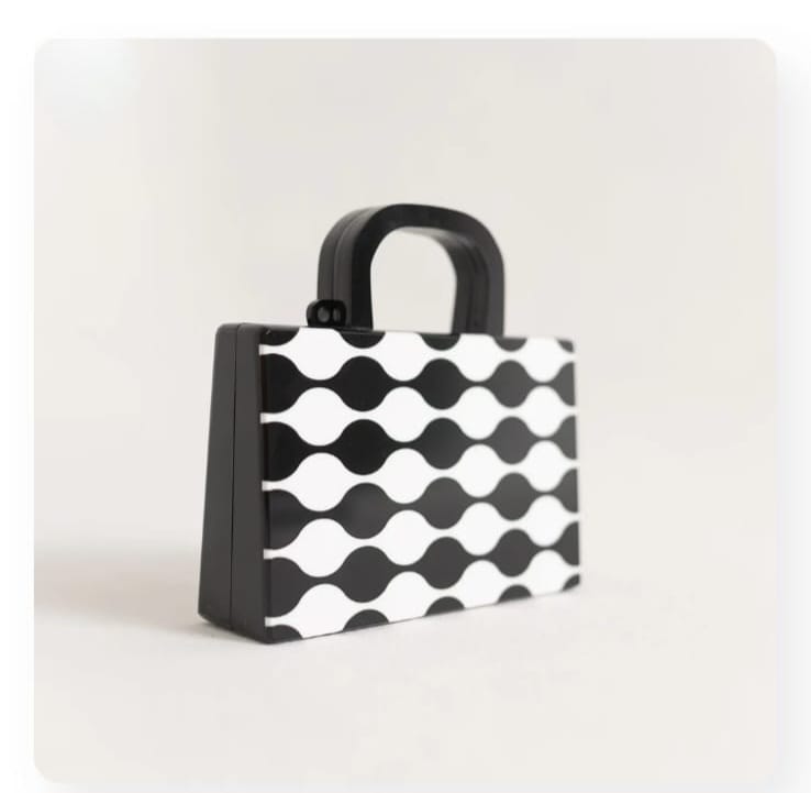 Confeccionada à mão em acrílico. Possui botões magnéticos para o seu fechamento e metais banhados a ouro. A bolsa acompanha alça corrente removível, assim, você pode usar como clutch ou como bolsa tiracolo.
