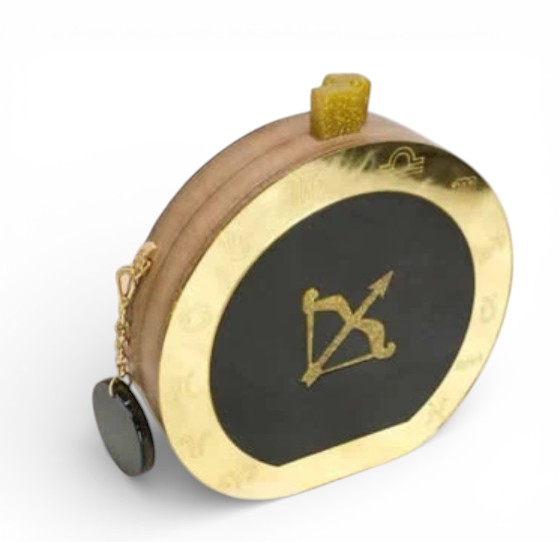 Confeccionada à mão em acrílico e madeira sustentável. Possui botões magnéticos para o seu fechamento e metais banhados a ouro. A bolsa acompanha alça corrente removível, assim, você pode usar como clutch ou como bolsa tiracolo.