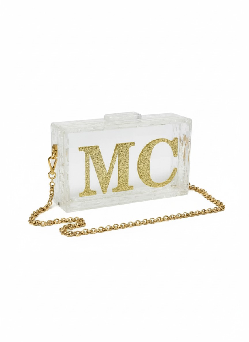 Confeccionada à mão em acrílico. Possui botões magnéticos para o seu fechamento e metais banhados a ouro. A bolsa acompanha alça corrente removível, assim, você pode usar como clutch ou como bolsa tiracolo.