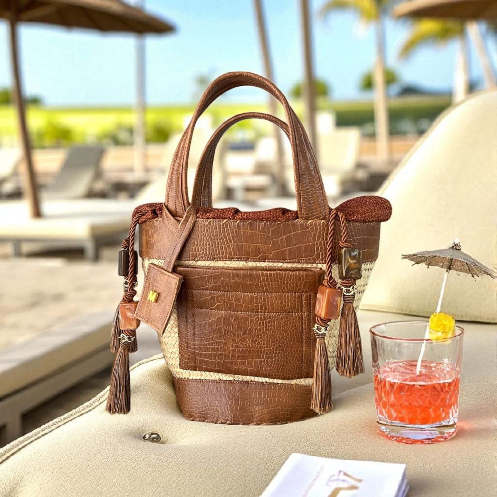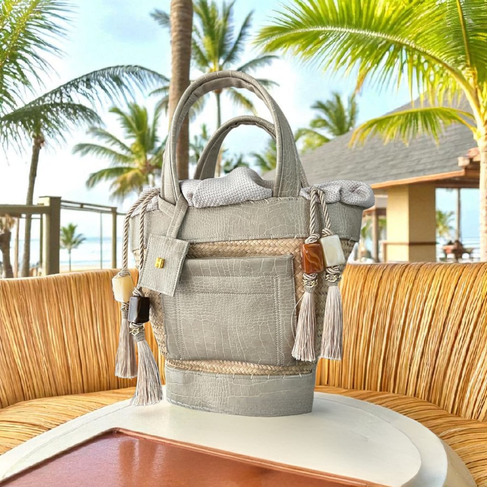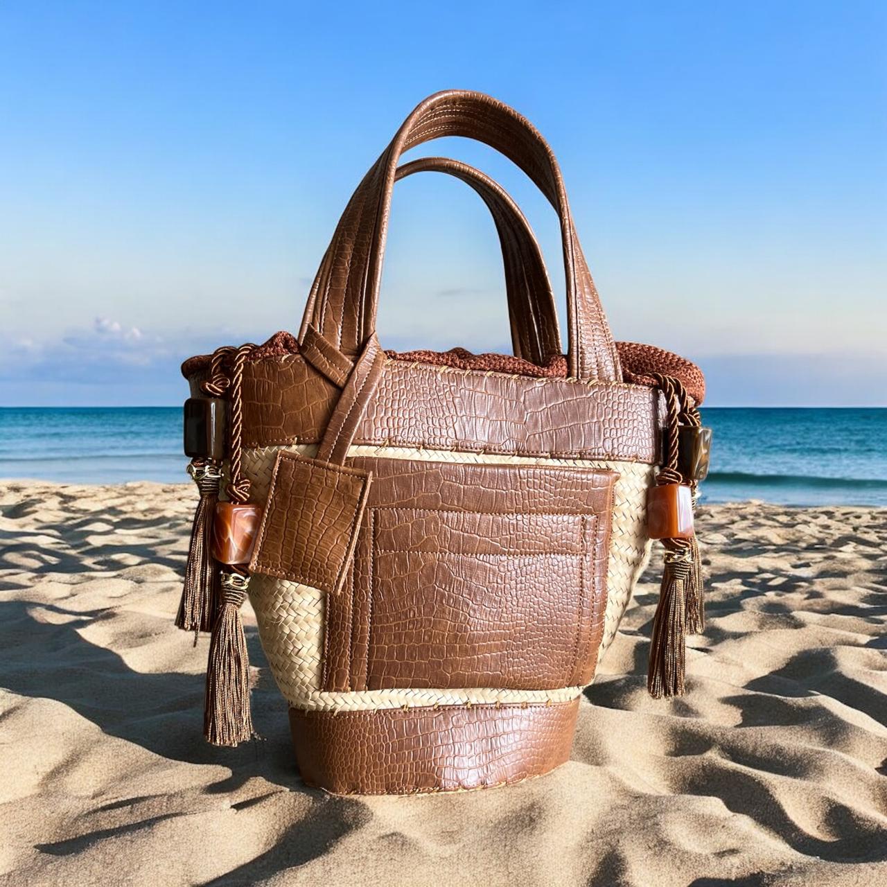 Confeccionada à mão em palha natural e couro tecnológico com 4 anos de garantia.
