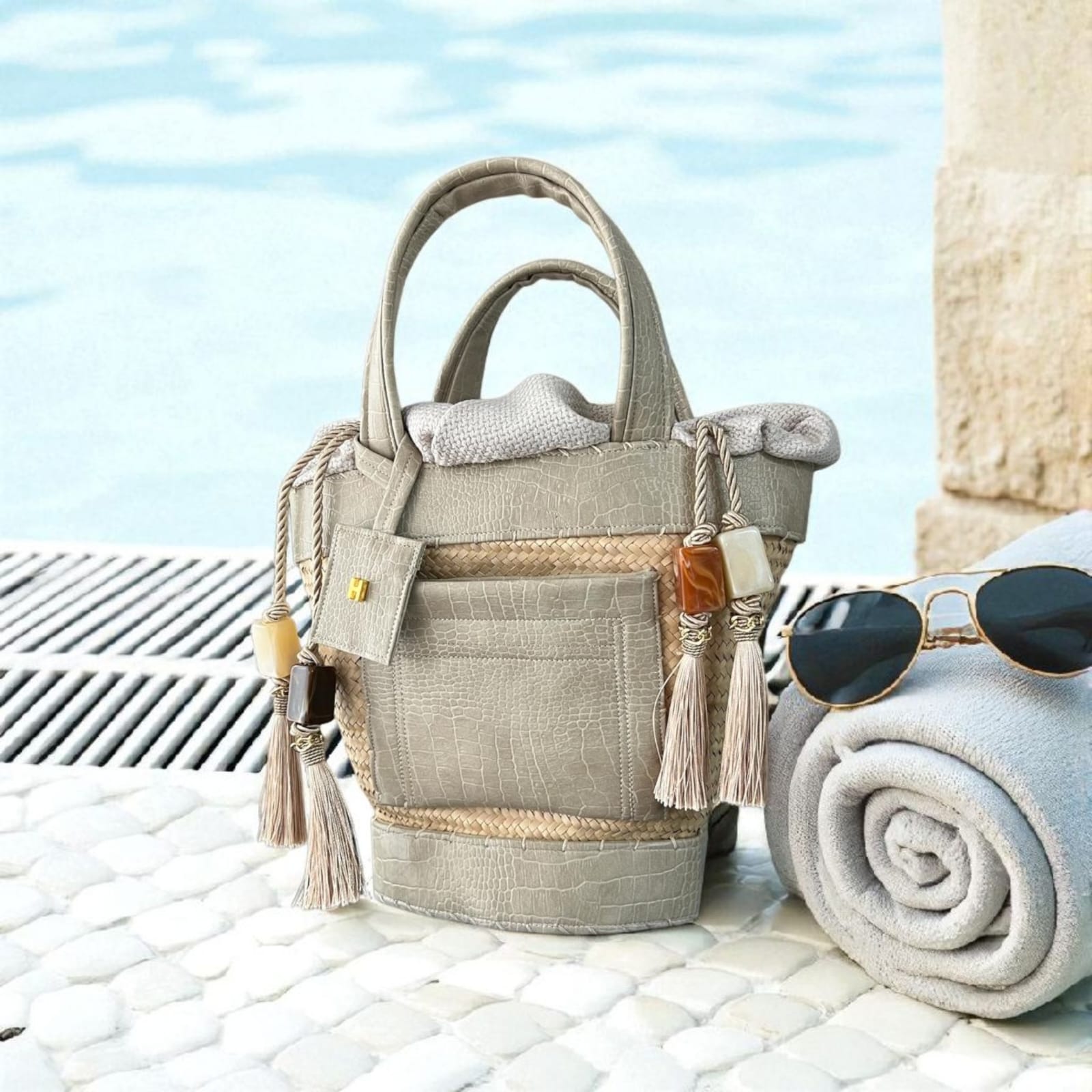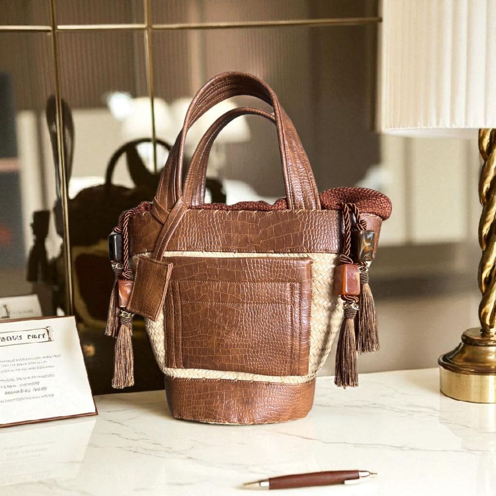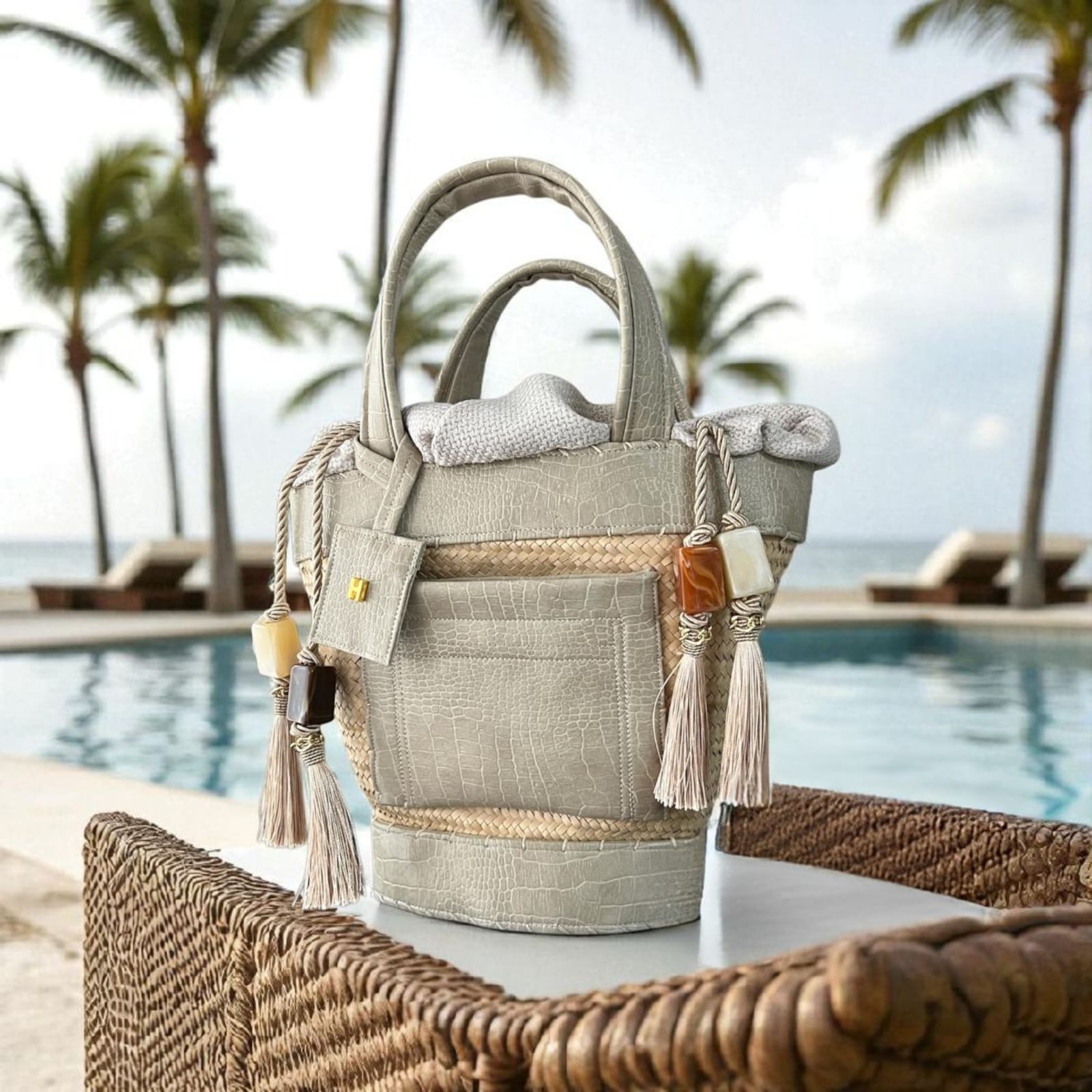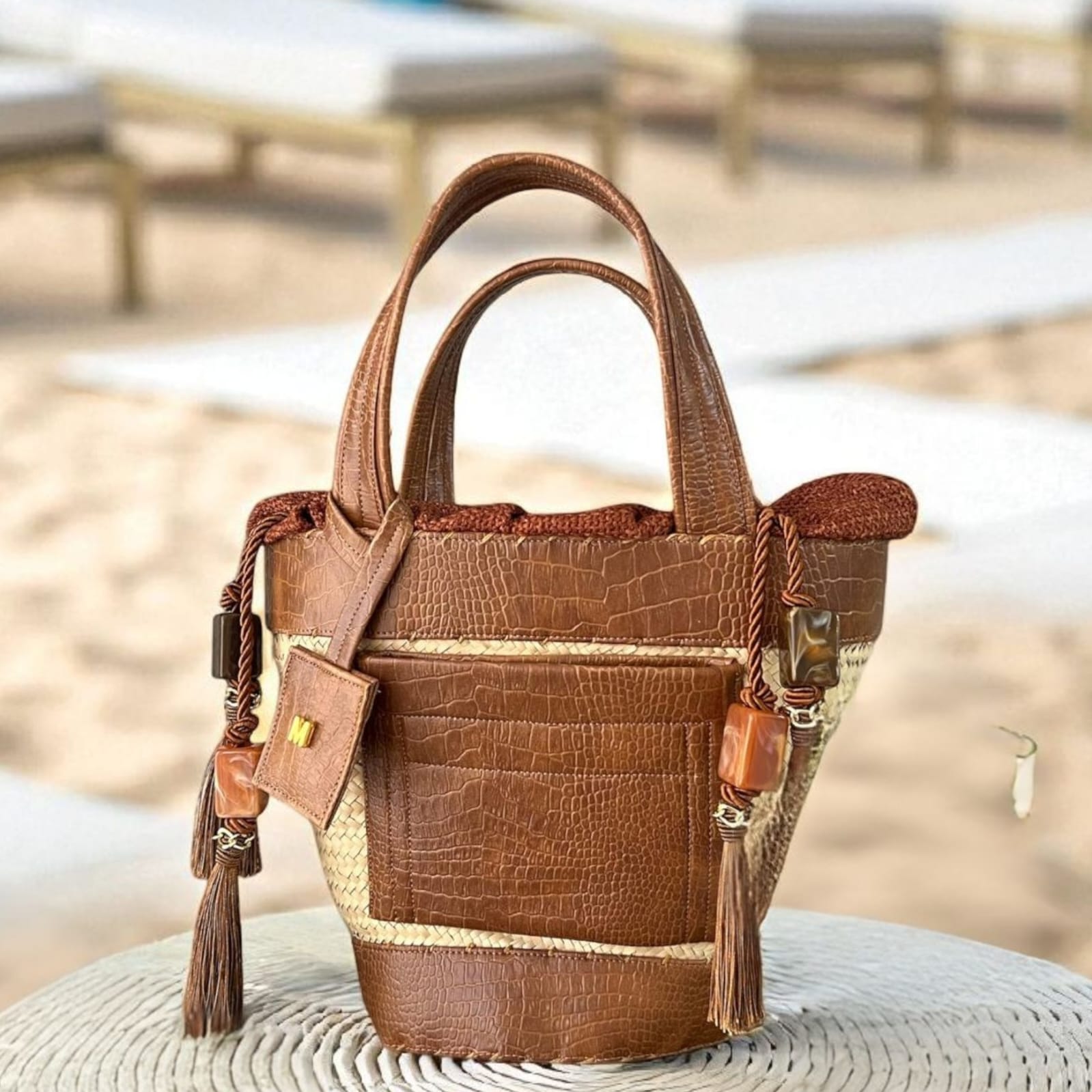 Confeccionada à mão em palha natural e couro tecnológico com 4 anos de garantia.