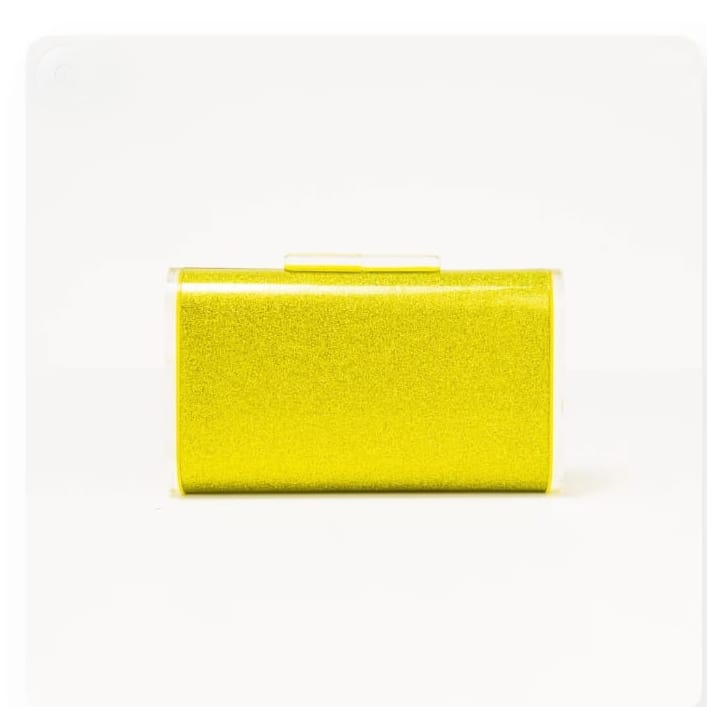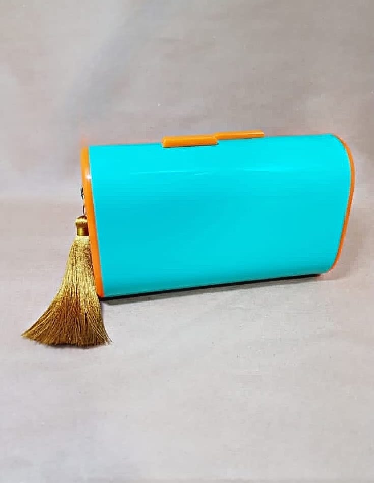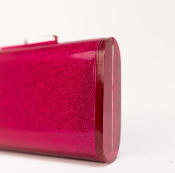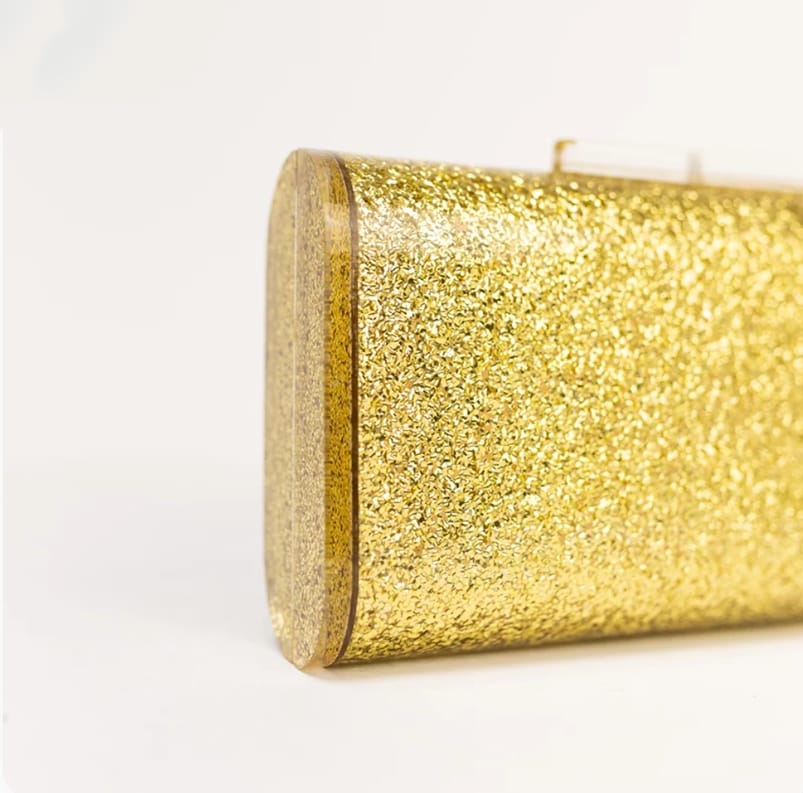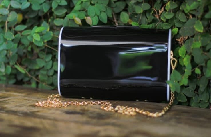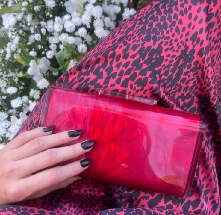 Confeccionada à mão em acrílico. Possui botões magnéticos para o seu fechamento e metais banhados a ouro. A bolsa acompanha alça corrente removível, assim, você pode usar como clutch ou como bolsa tiracolo.
