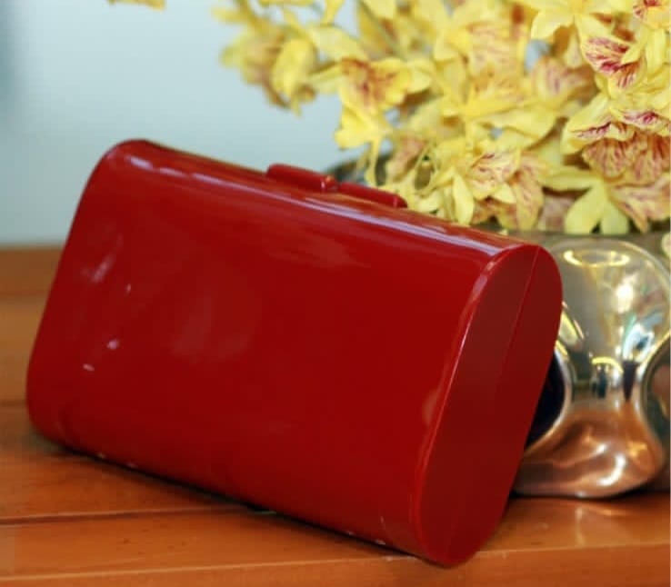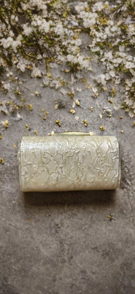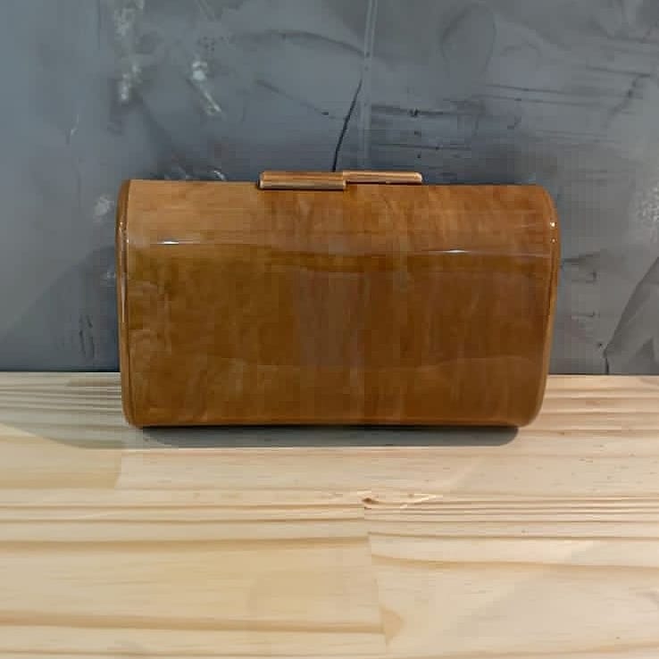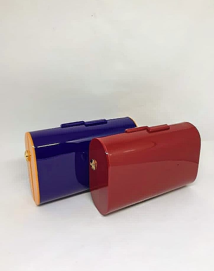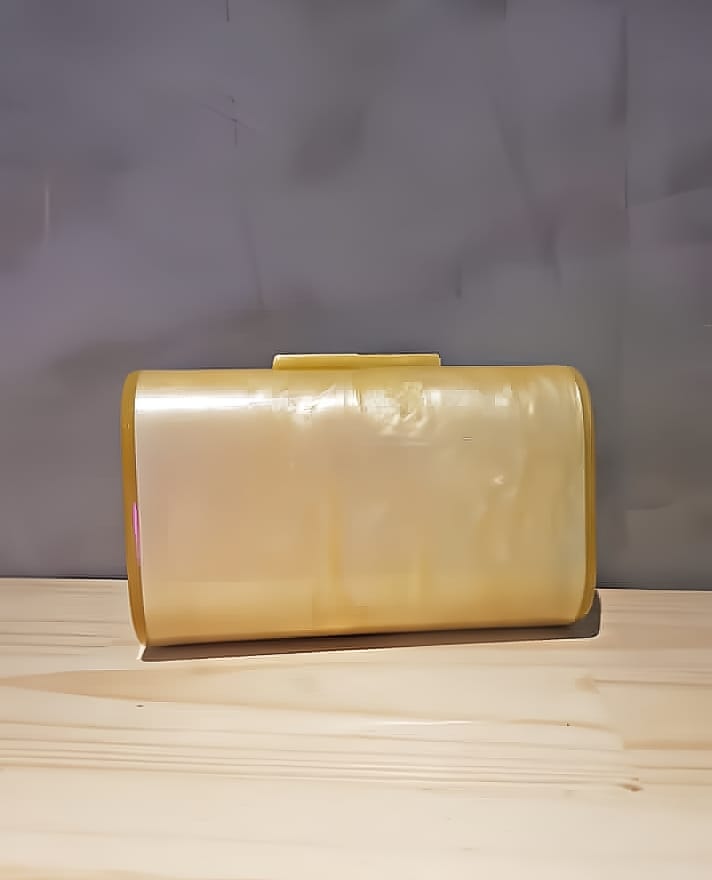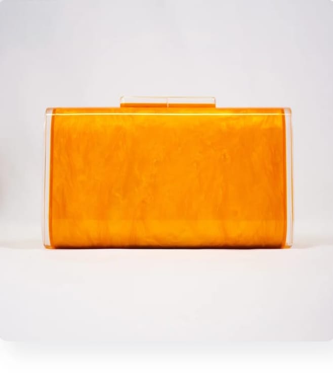 Confeccionada à mão em acrílico. Possui botões magnéticos para o seu fechamento e metais banhados a ouro. A bolsa acompanha alça corrente removível, assim, você pode usar como clutch ou como bolsa tiracolo.