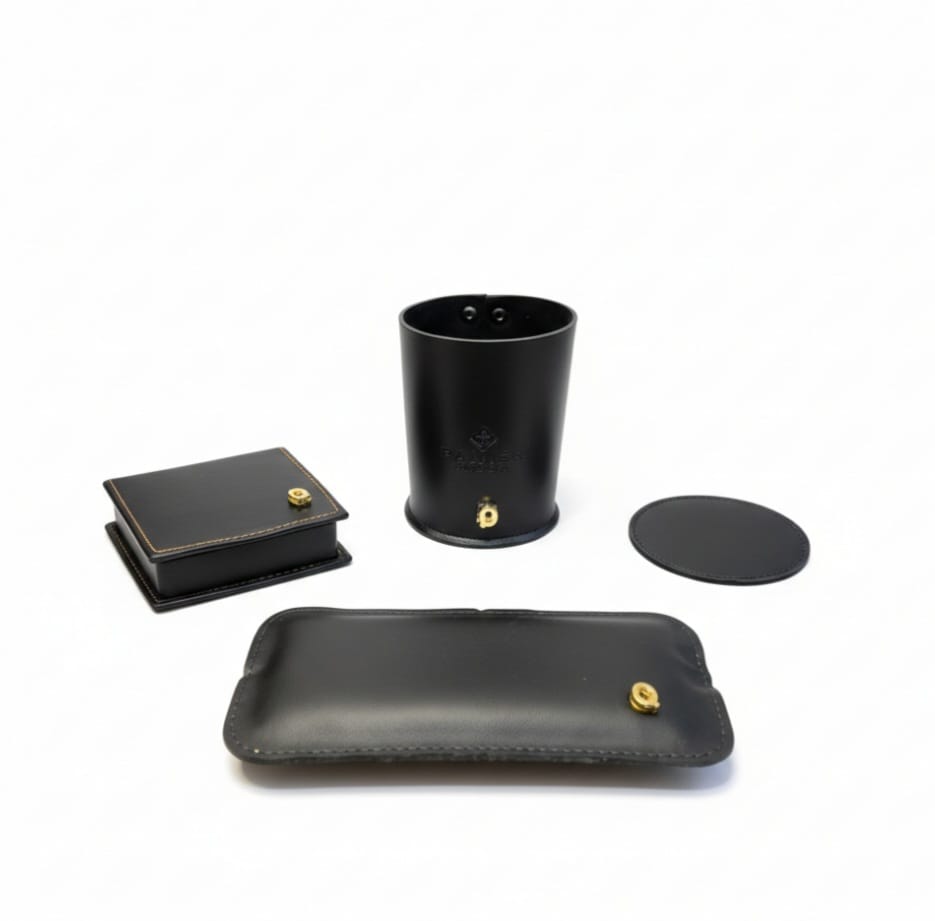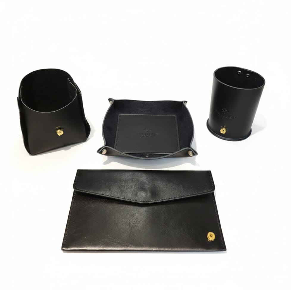 Todos os kits acompanham caixa personalizada com detalhes em couro.