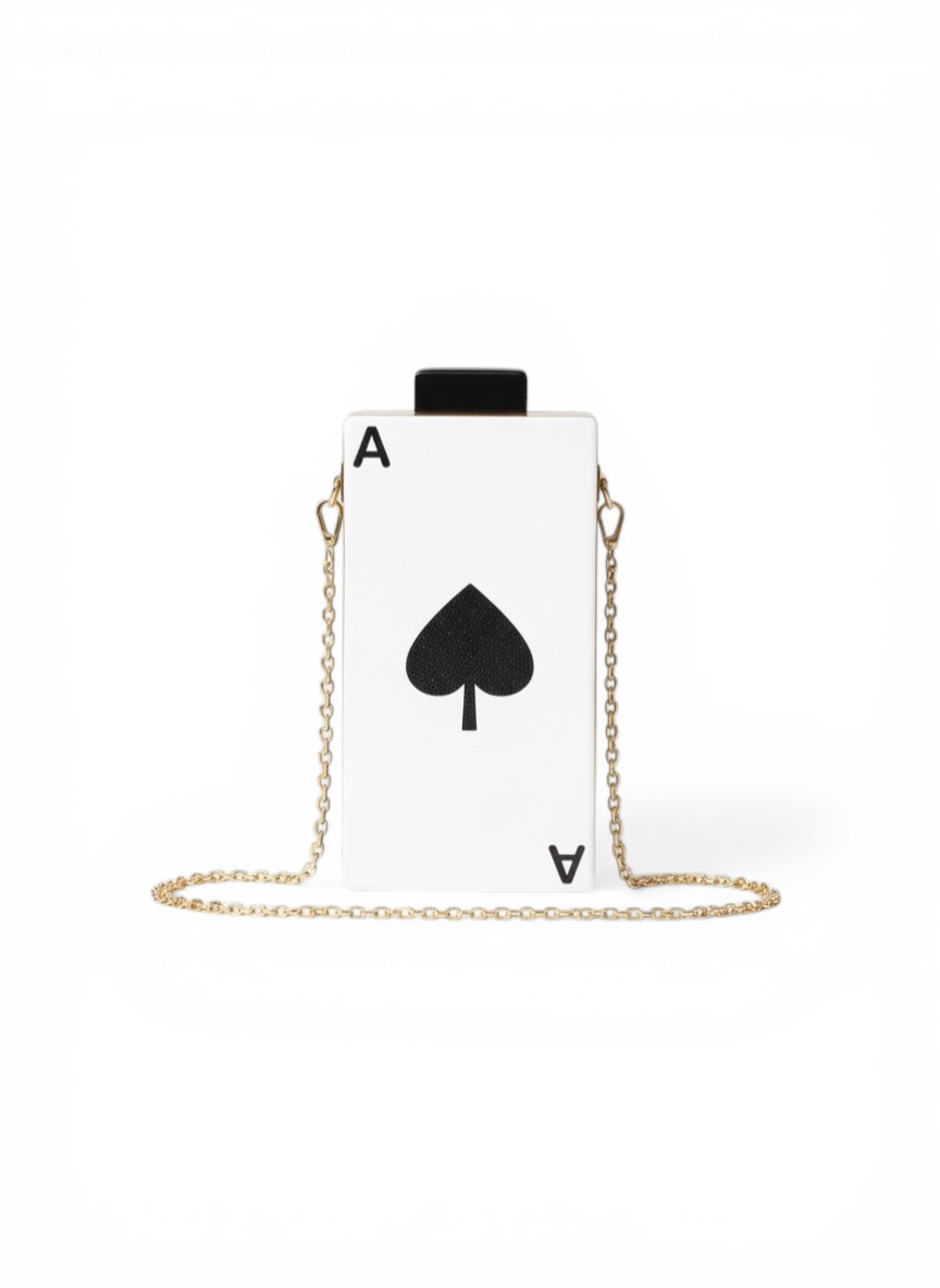 Confeccionada à mão em acrílico e madeira sustentável. Possui botões magnéticos para o seu fechamento e metais banhados a ouro. A bolsa acompanha alça corrente removível, assim, você pode usar como clutch ou como bolsa tiracolo.