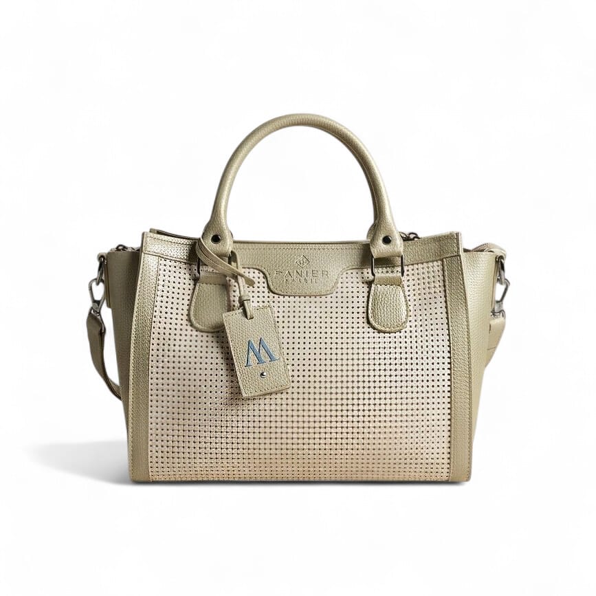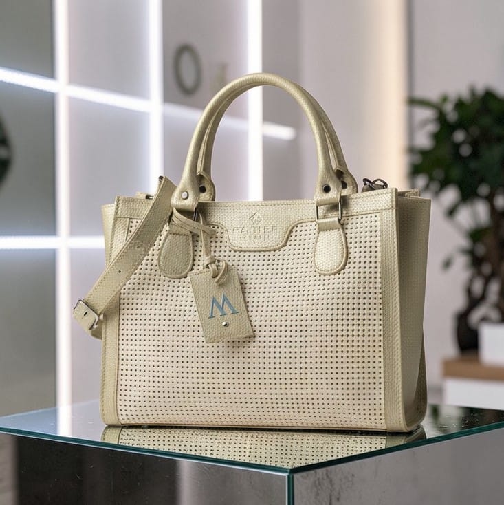 Confeccionada à mão em couro vegano. Possui alça tiracolo removível e tag personalizável.