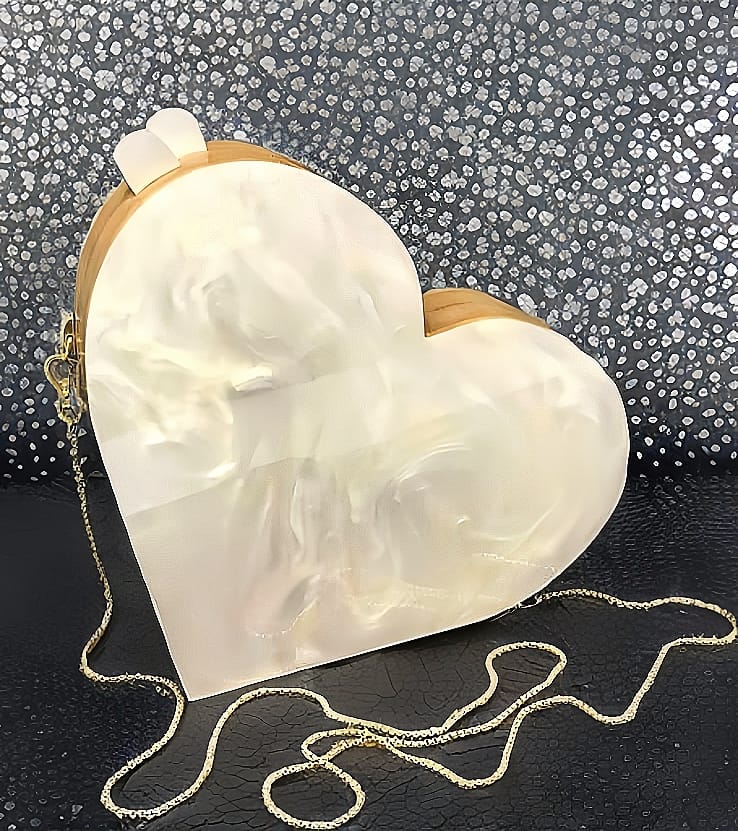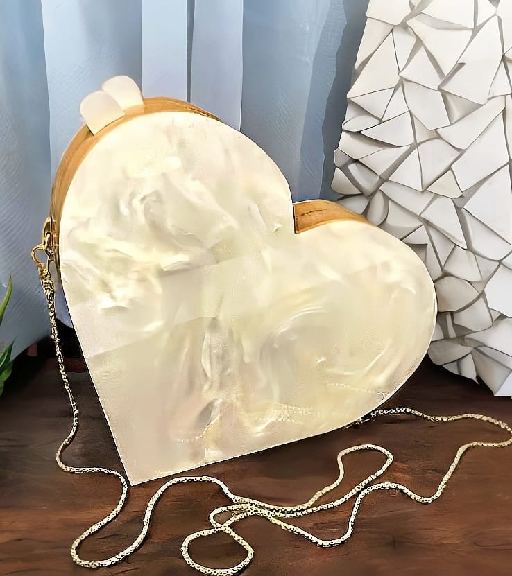 Confeccionada à mão em acrílico e madeira sustentável. Possui botões magnéticos para o seu fechamento e metais banhados a ouro. A bolsa acompanha alça corrente removível, assim, você pode usar como clutch ou como bolsa tiracolo.