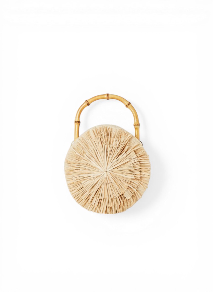 Confeccionada em palha natural. Possui alça de mão em bambu natural e alça tiracolo em cordão de são francisco.